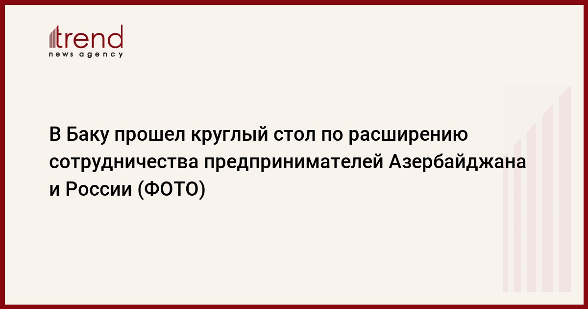 БАКУ/Trend/ - В Бакинском бизнес-центре состоялся круглый стол, посвященный развитию связей, определению новых направлений сотрудничества, обмену опытом в сфере малого и среднего бизнеса (МСБ) между предпринимателями Азербайджана и России.