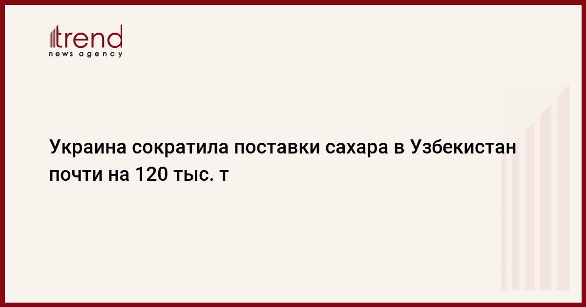 БАКУ/Trend/ - Украина сократила продажу сахара в Узбекистан на 114 тысяч тонн, сообщает Trend со ссылкой на узбекские СМИ.