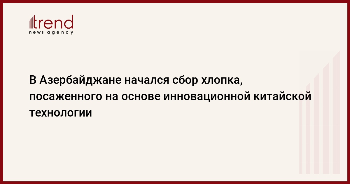 БАКУ /Trend/ - На Ширванской опытной станции начался сбор урожая хлопка, посаженного с использованием инновационных китайских технологий.