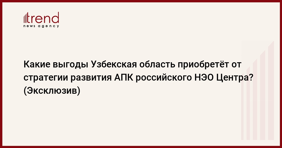 БАКУ/Trend/ - Узбекистан сегодня обладает весомыми преимуществами в области сельского хозяйства, в частности серьезным экспортным потенциалом и высоким внутренним спросом на продукцию АПК, партнер российской консалтинговой компании «НЭО Центр» Инна Гольфанд рассказала Trend в интервью.