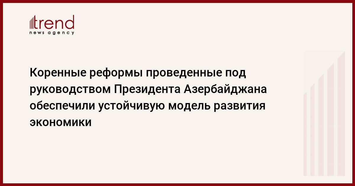 БАКУ/Trend/ - Экономические реформы, проведенные под руководством главы государства, обеспечили устойчивую модель развития Азербайджана, сказал Trend депутат Милли Меджлиса (парламента), член парламентского комитета по экономической политике, промышленности и предпринимательству Руфат Гулиев, комментируя результаты экономического роста по итогам девяти месяцев текущего года.