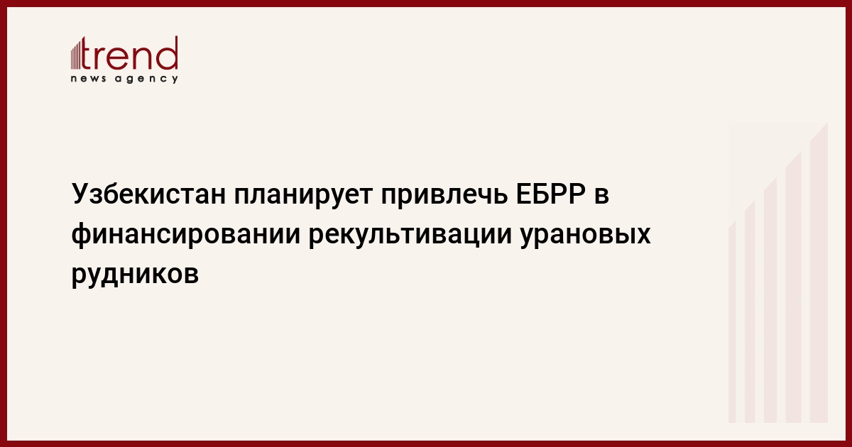 БАКУ/Trend/-Власти Узбекистана планируют привлечь средства Европейского банка реконструкции и развития (ЕБРР) на 7 миллионов евро для рекультивации двух бывших урановых рудников в стране, сообщает Trend со ссылкой на узбекские СМИ.
