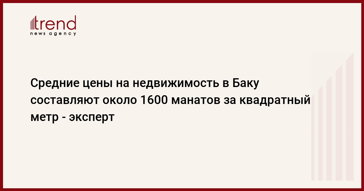 БАКУ /Trend/ - Средние цены на недвижимость в Баку и Абшероне составляют около 1600 манатов за квадратный метр, передает Trend со ссылкой на председателя общества оценщиков Азербайджана Нусрата Ибрагимова.