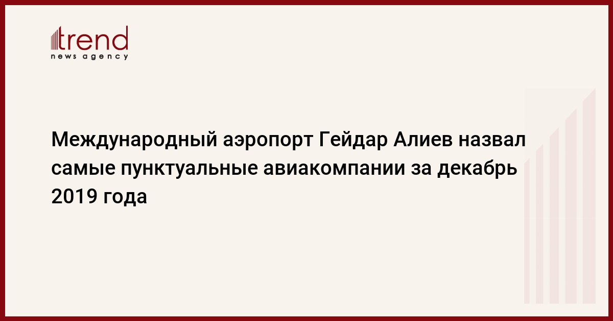Как сообщили в пресс-службе Международного аэропорта Гейдар Алиев, 100-процентный показатель пунктуальности при вылете из Баку в декабре 2019 года показали три авиакомпании Etihad Airways, Kuwait Airways и МАУ (Ukraine International).