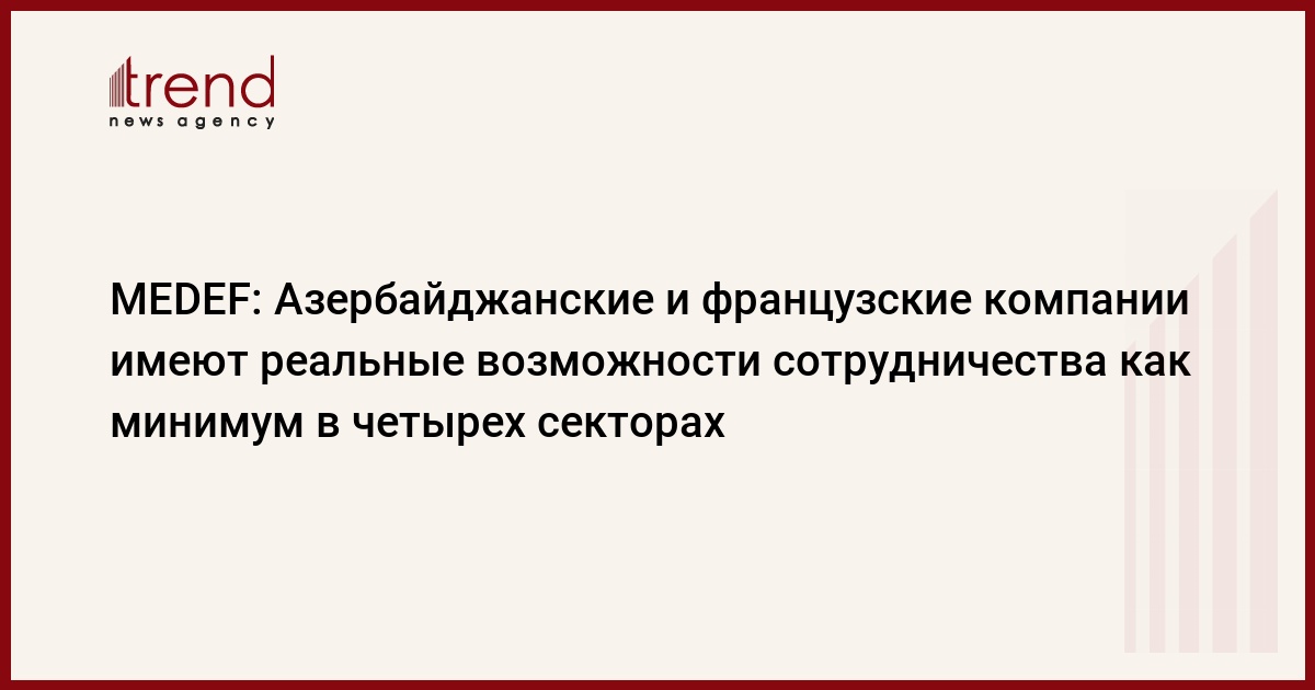 БАКУ /Trend/ - Азербайджанские и французские компании имеют реальные возможности для сотрудничества как минимум в четырех секторах.