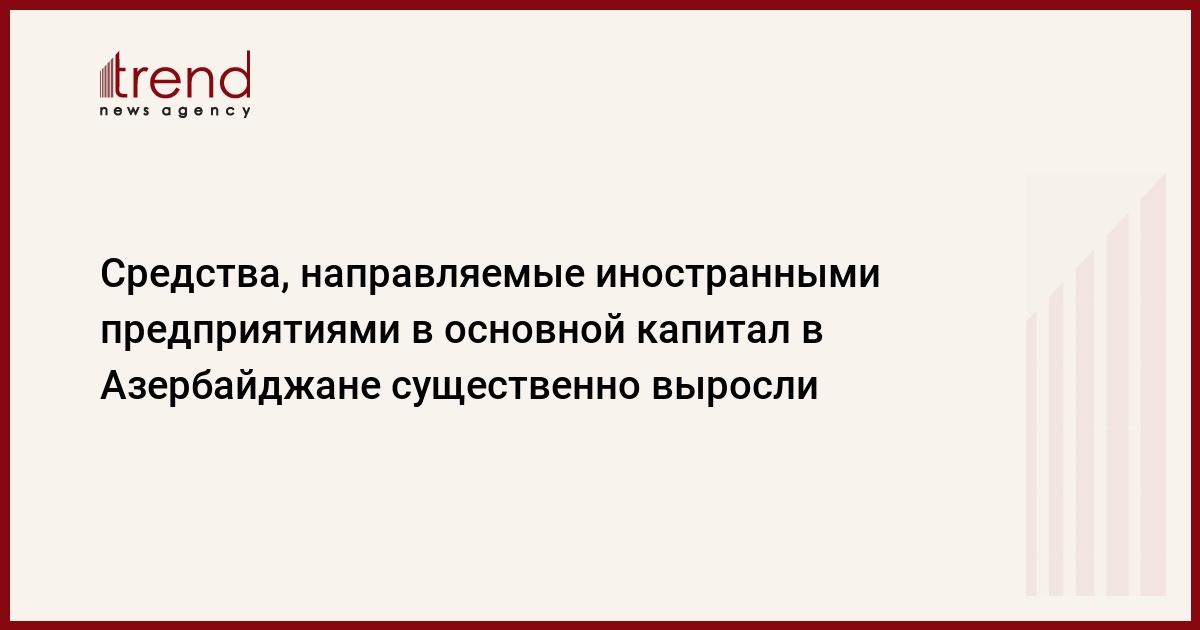 БАКУ/Trend/ - В январе-августе 2020 года иностранными предприятиями и организациями в основной капитал в Азербайджане было направлено 3,32 миллиарда манатов, что превышает показатель аналогичного периода 2019 года на 31 порцента.