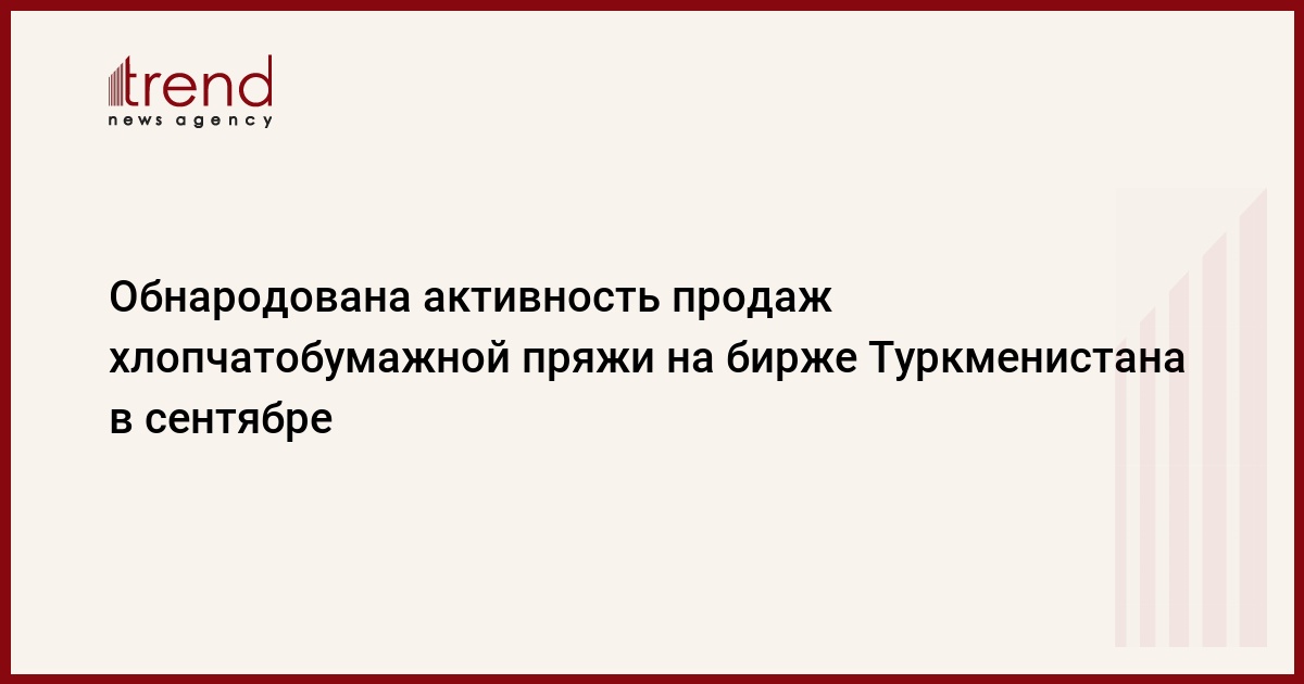 БАКУ /Trend/ - В сентябре на Государственной товарно-сырьевой бирже Туркменистана интенсивно продавалась хлопчатобумажная пряжа, сообщает Trend.