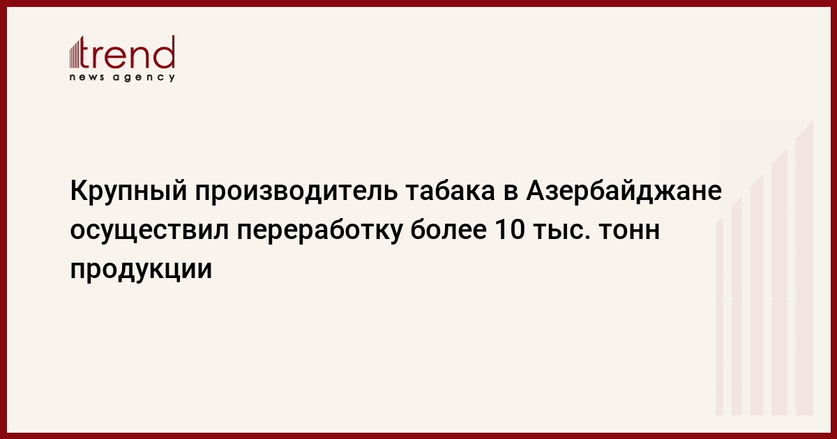 БАКУ /Trend/ - Перерабатывающие пункты ООО Azertutun до сих пор получили от производителей более 10 тысяч тонн табака.