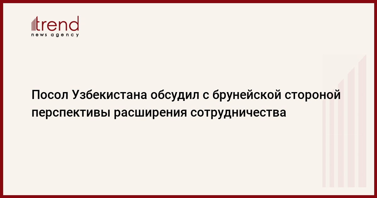 БАКУ/Trend – 8 октября состоялись переговоры в формате видеоконференции Посла Узбекистана в Малайзии Равшана Усманова с директором Департамента по сотрудничеству с международными организациями министерства иностранных дел Брунея Рослиной бинти Камалуддин, сообщает ИА «Дунё».