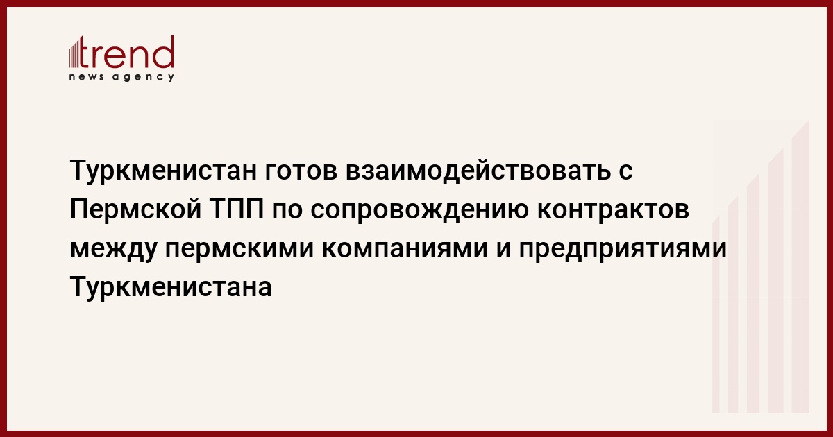 Также отмечалось, что компании Пермского края РФ, которые решат сотрудничать с туркменскими фирмами, смогут получить подтверждающую информацию о деятельности потенциальных партнеров.