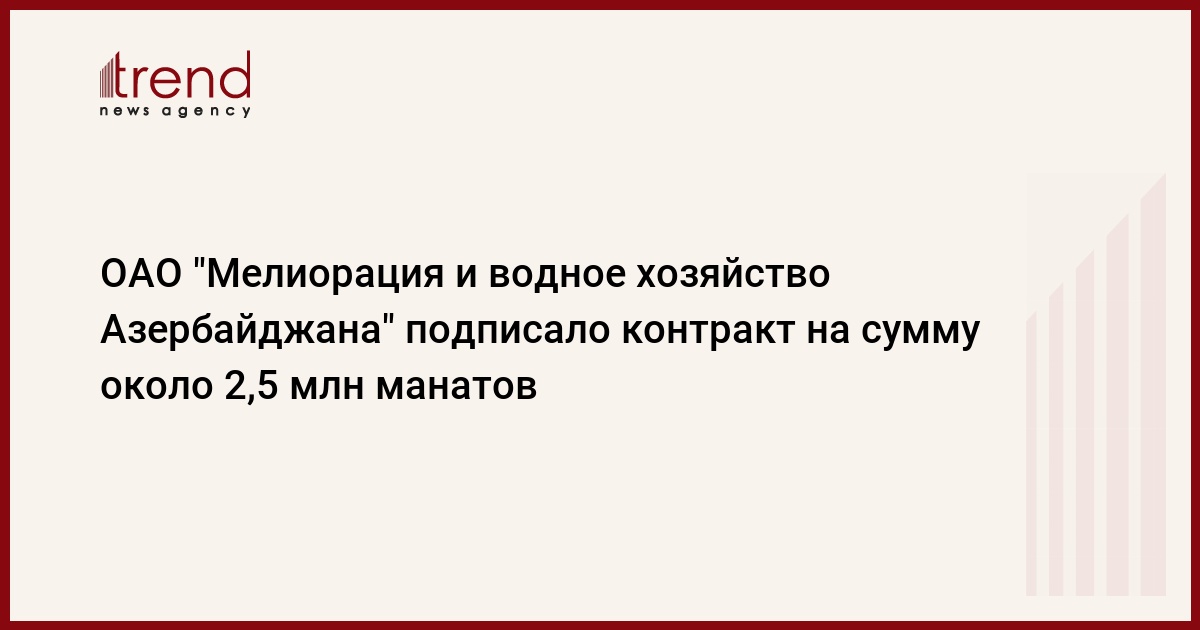 БАКУ /Trend/ - Объединенная дирекция строящихся объектов мелиорации и ирригации ОАО "Мелиорация и водное хозяйство Азербайджана" и ООО Farhad подписали контракт на сумму около 2,5 миллиона манатов.