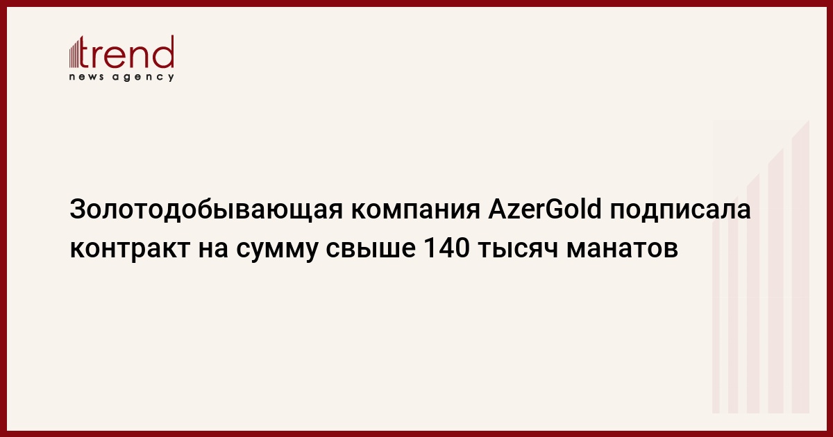 БАКУ/Trend/ - Золотодобывающая компания "AzerGold" и ООО "GRAVİTY LTD" подписали контракт на сумму более 140,22 тысяч манатов.