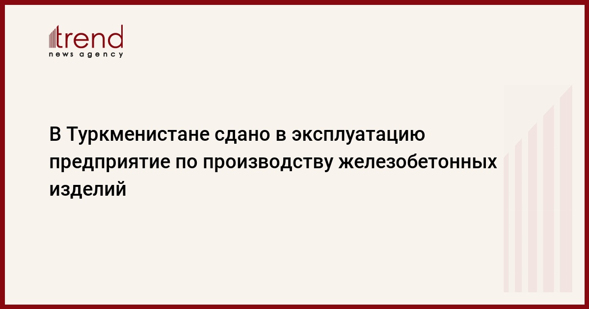 БАКУ /Trend/ - В Туркменистане открылось новое предприятие по производству железобетонных изделий, сообщает Trend со ссылкой на газету «Туркменистан: Золотой век».
