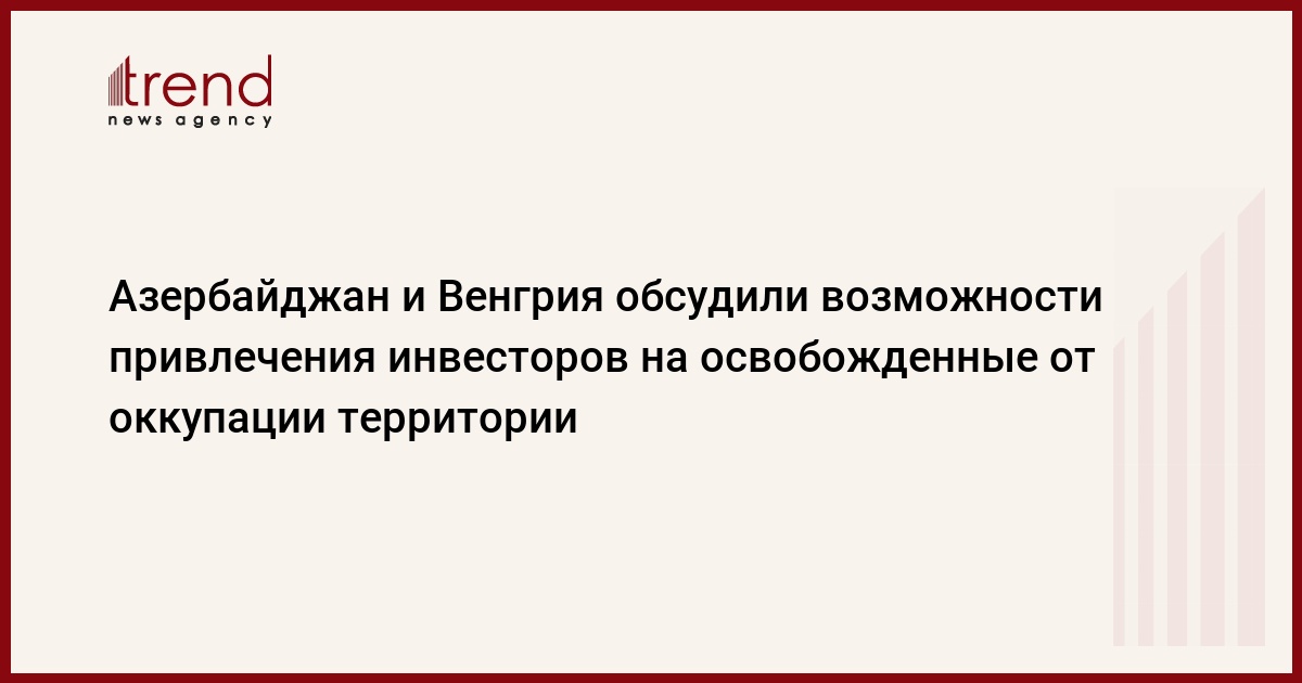 БАКУ /Trend/ - Азербайджан и Венгрия обсудили возможности привлечения инвесторов на освобожденные от оккупации территории.