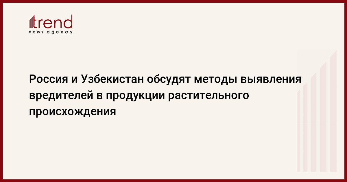 БАКУ /Trend/ - Россия и Узбекистан договорились организовать научные обсуждения по вопросам методик выявления вирусов и вредителей в продукции растительного происхождения и выработки наиболее эффективных способов их обнаружения.