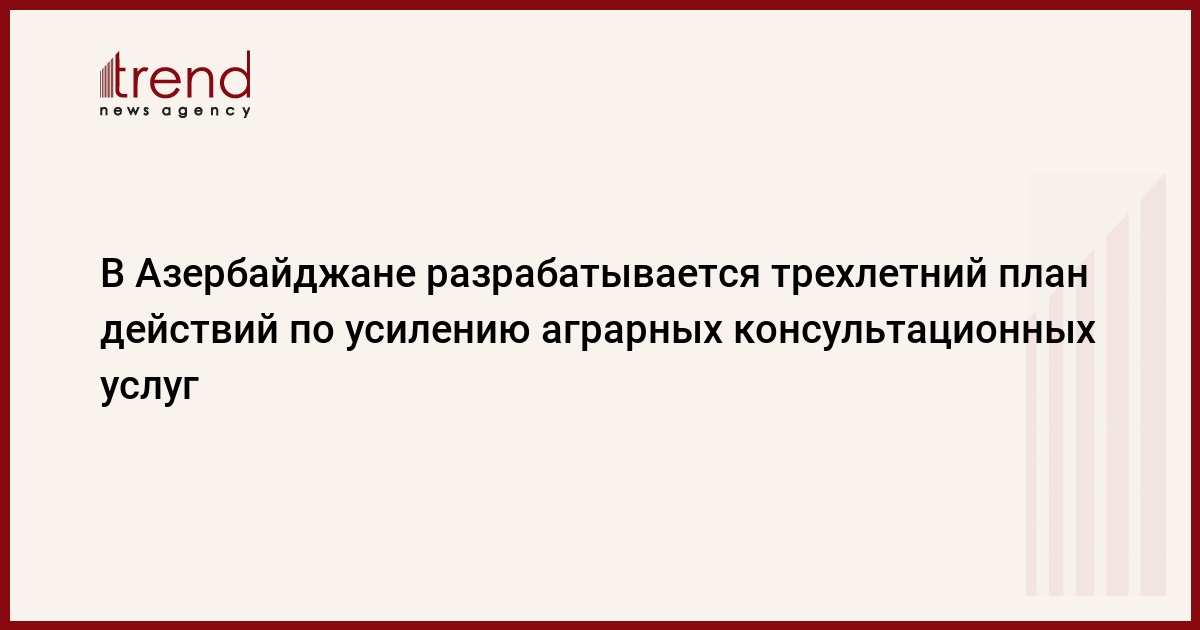 БАКУ /Trend/ - В течение двух лет в Азербайджане будут разработаны пятилетняя стратегия и трехлетний план действий по усилению аграрных консультационных услуг.