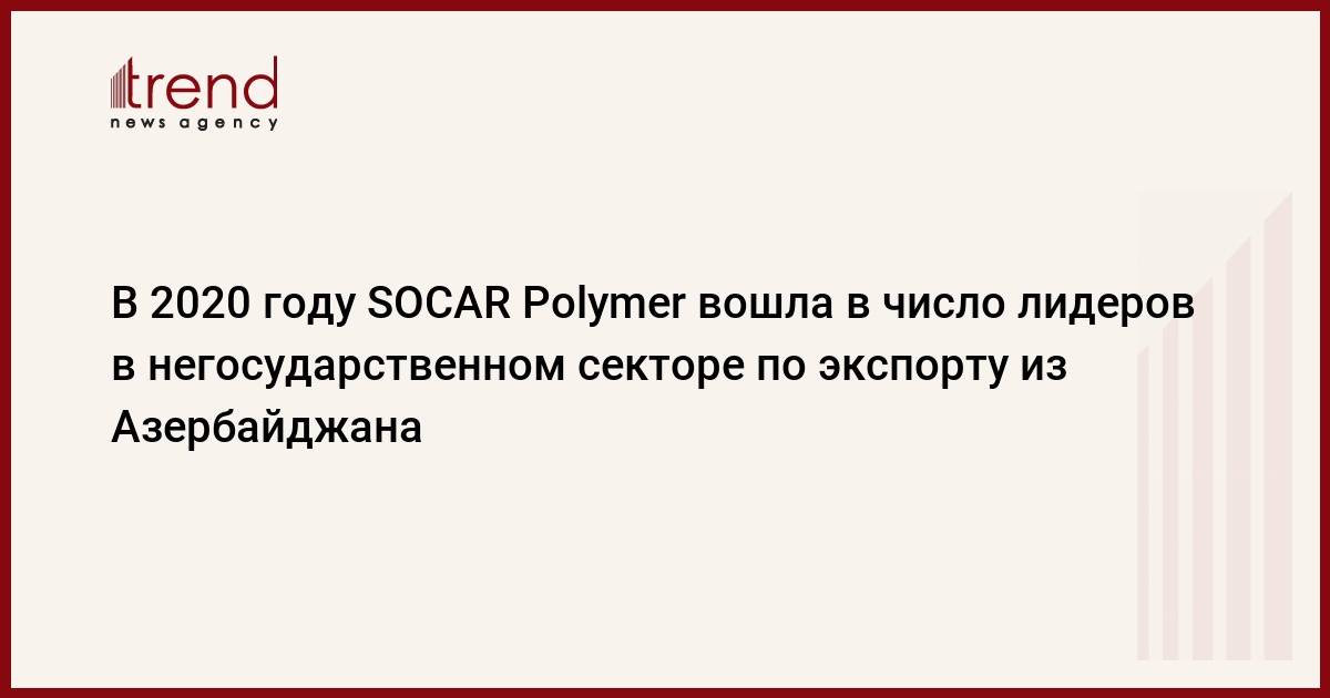 В 2020 году компания SOCAR Polymer экспортировала из Азербайджана продукцию на сумму 102,1 миллиона долларов США.