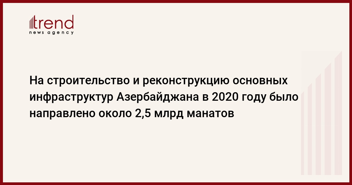 БАКУ/Trend/ - В 2020 году на строительство и реконструкцию основных энергетических, водо- и газоснабжающих, транспортных, коммунальных, мелиоративных и сельскохозяйственных инфраструктур Азербайджана было направлено 2,514 миллиарда манатов.