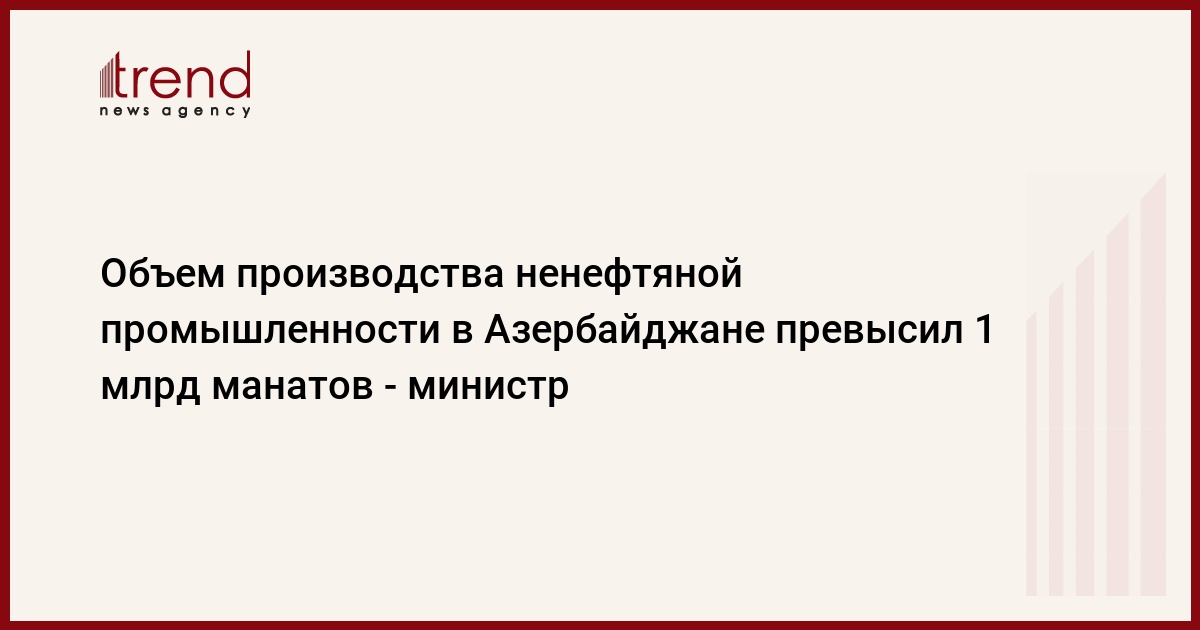 БАКУ /Trend/ - Совокупный объем произведенных товаров и предоставленных услуг в ненефтяной промышленности за январь 2021 года составил 1,03 миллиарда манатов.