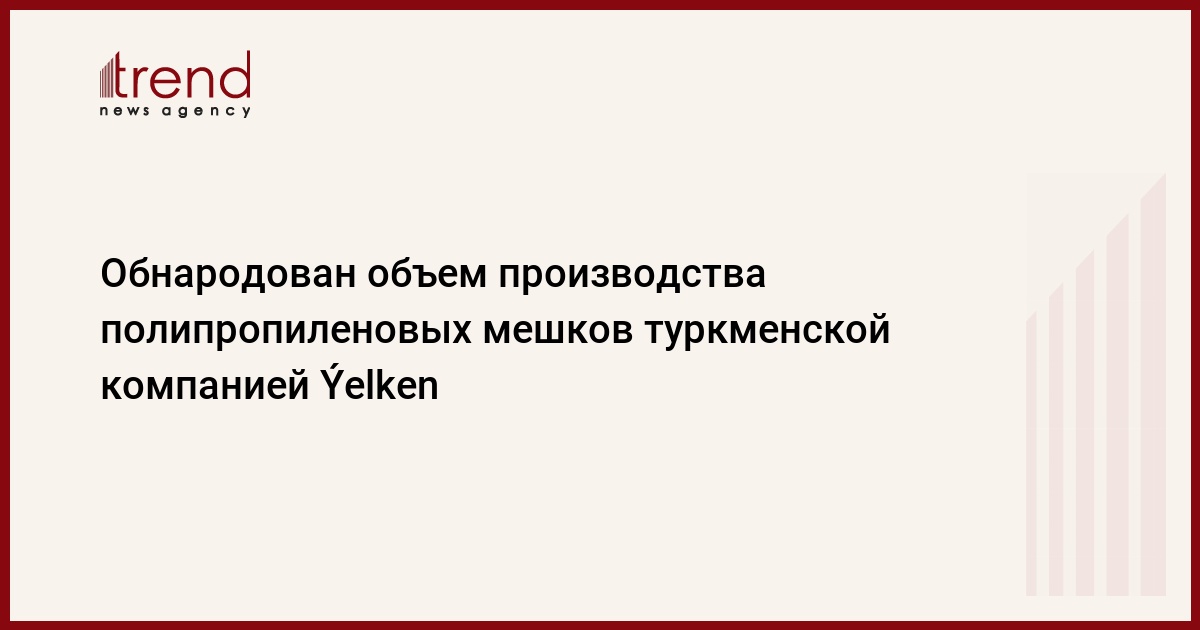 БАКУ /Trend/ - Индивидуальное предприятие «Ýelken» Туркменистана произвело более 22 миллионов полипропиленовых мешков за 2020 год, сообщает Trend со ссылкой на информационный портал «Бизнес Туркменистан».