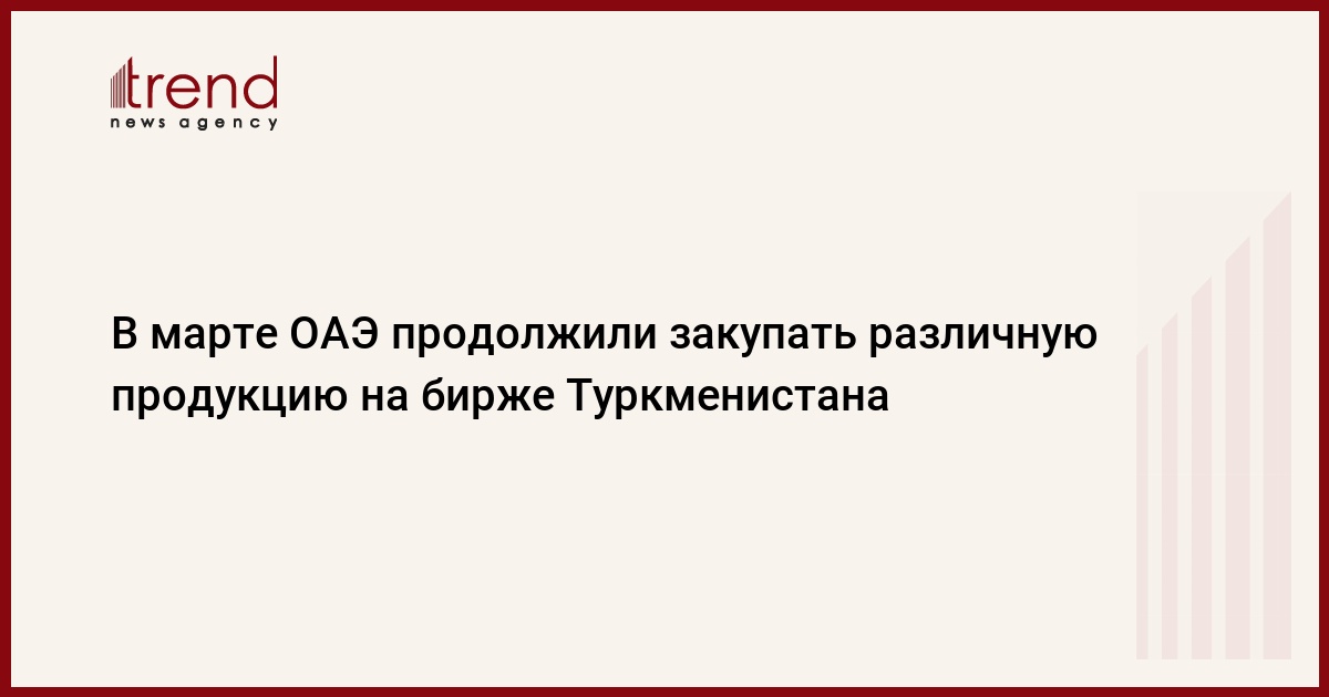 БАКУ /Trend/ - Объединенные Арабские Эмираты (ОАЭ) активно участвовали на Государственной товарно-сырьевой бирже Туркменистана в марте 2021 года, сообщает Trend.