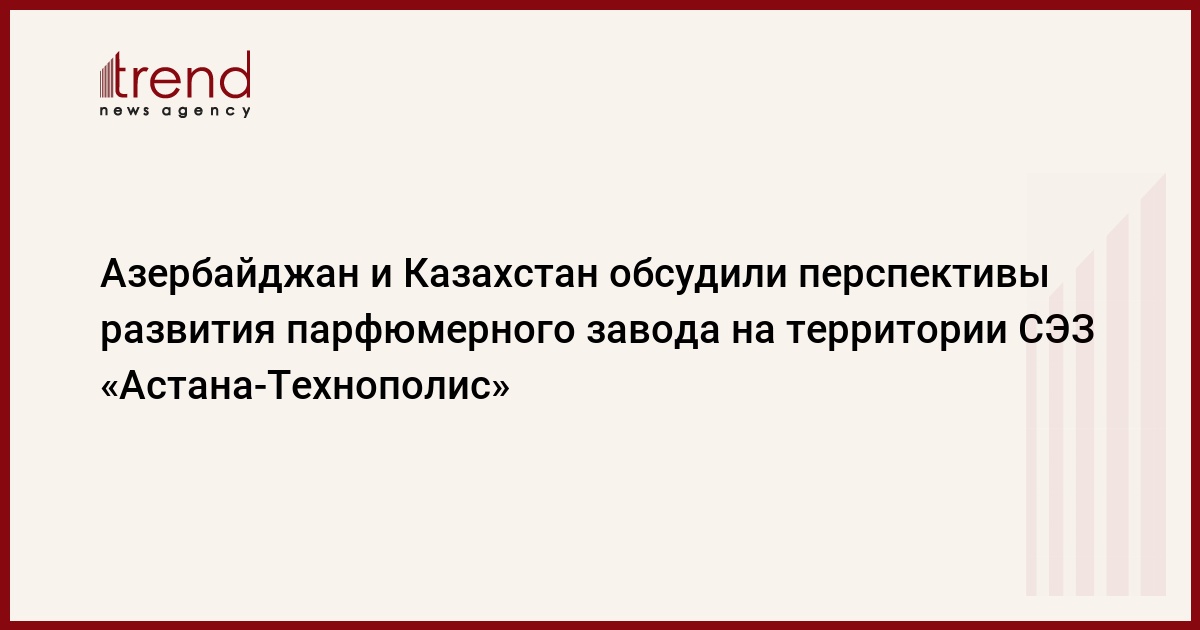 БАКУ/Trend/ - Азербайджан и Казахстан 18 мая текущего года обсудили перспективы развития парфюмерного завода, строящегося с привлечением азербайджанских инвестиций на территории Специальной экономической зоны «Астана-Технополис».