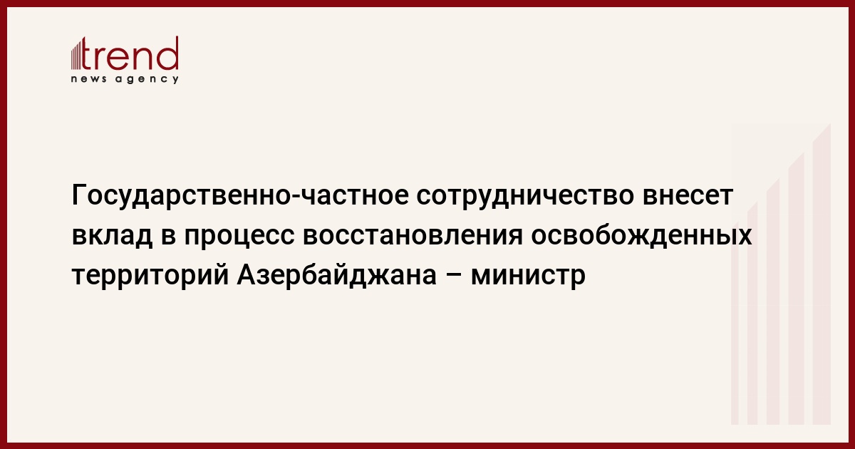 БАКУ /Trend/ - Взаимное сотрудничество государства, общества, деловых кругов и банков Азербайджана внесет существенный вклад в процесс восстановления освобожденных от армянской оккупации территорий.