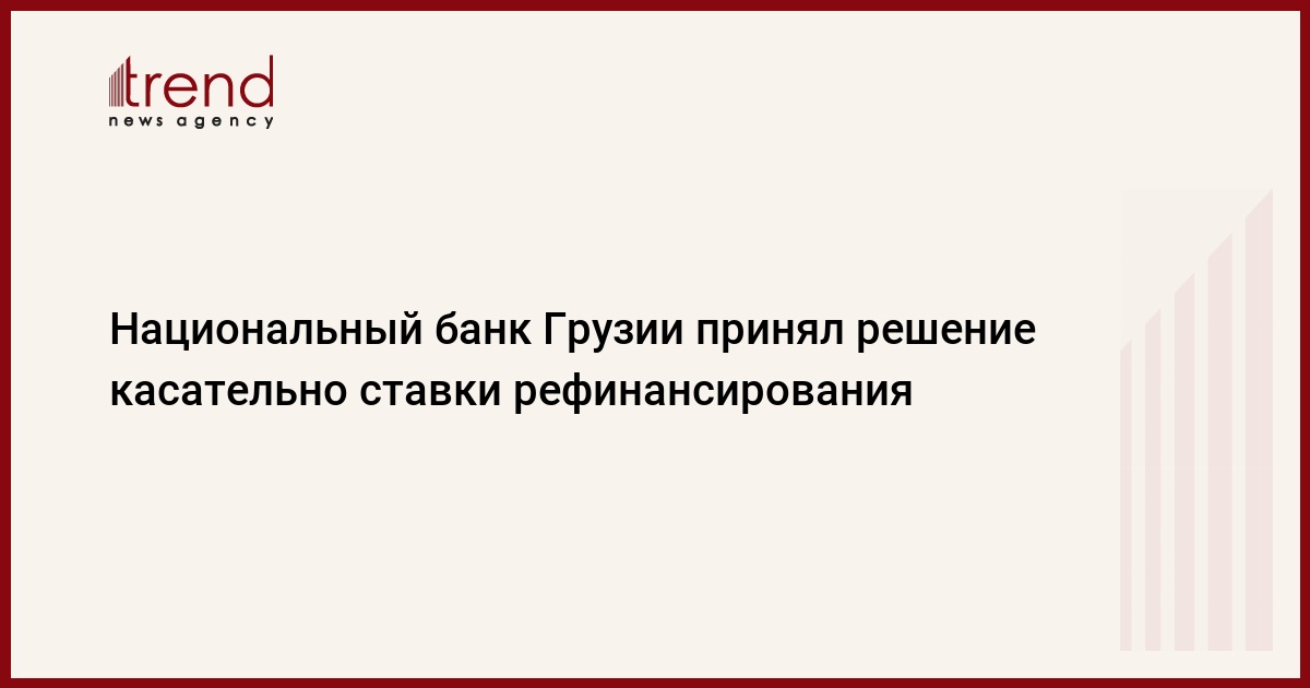 БАКУ /Trend/ - Комитет монетарной политики Национального банка Грузии принял решение не менять ставку рефинансирования и оставить ее на уровне 10 процентов, сообщает Trend со ссылкой на Нацбанк Грузии.