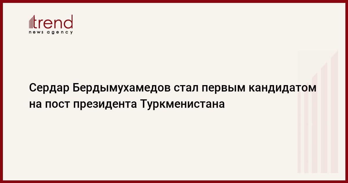 БАКУ /Trend/ - Вице-премьер Сердар Бердымухамедов стал первым кандидатом на пост главы государства на предстоящих досрочных президентских выборах в Туркменистане, сообщает Trend со ссылкой на электронную газету Nebit-Gaz.