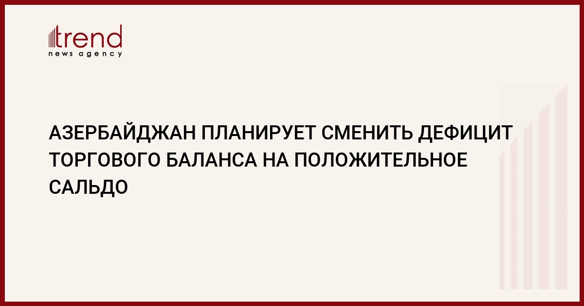 В 2006 году Азербайджан планирует сменить дефицит торгового баланса на положительное сальдо. Как передает Trend , об этом журналистам сообщил министр экономического развития Фархад Алиев.