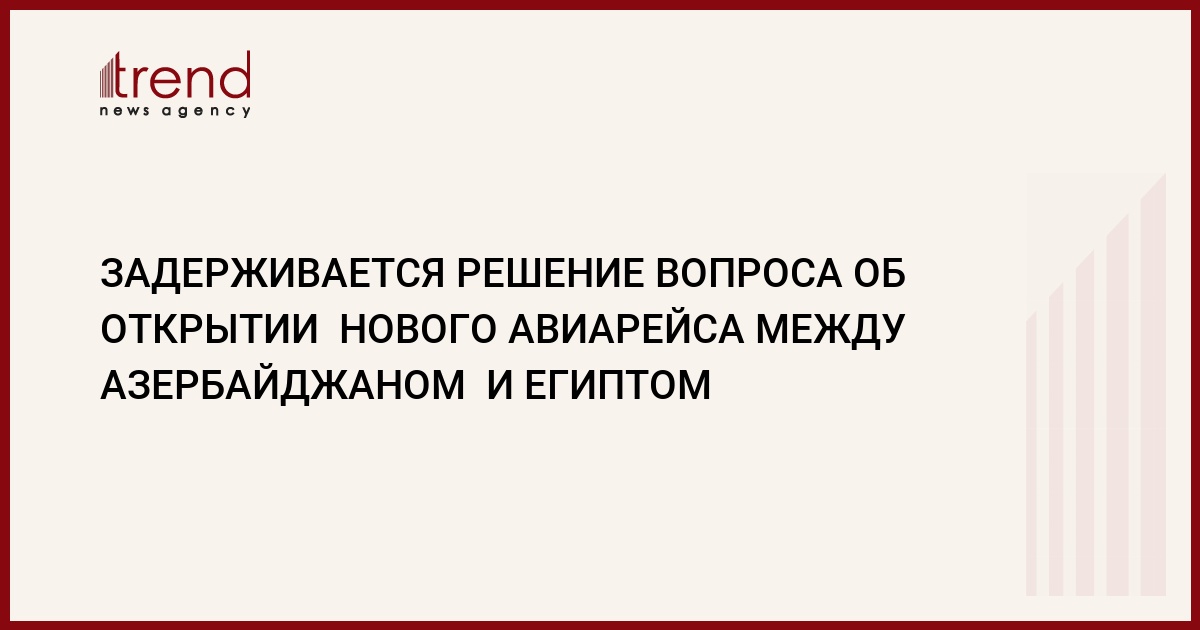 Задерживается решение вопроса об открытии нового авиарейса между Азербайджаном и Египтом. Как сообщили Trend в посольстве Египта в Азербайджане, вопрос все еще находится на рассмотрении Госконцерна "Азарбайджан хава йоллары" и Министерства гражданской авиации Египта.
