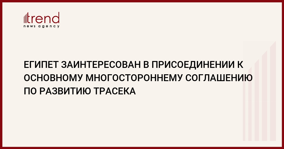 Египет заинтересован в присоединении к Основному многостороннему соглашению по развитию транспортного коридора Европа-Кавказ-Азия (TRACEСA), эксклюзивно сообщил Trend национальный секретарь Азербайджана в Межправительственной комиссии TRACEСA Акиф Мустафаев.