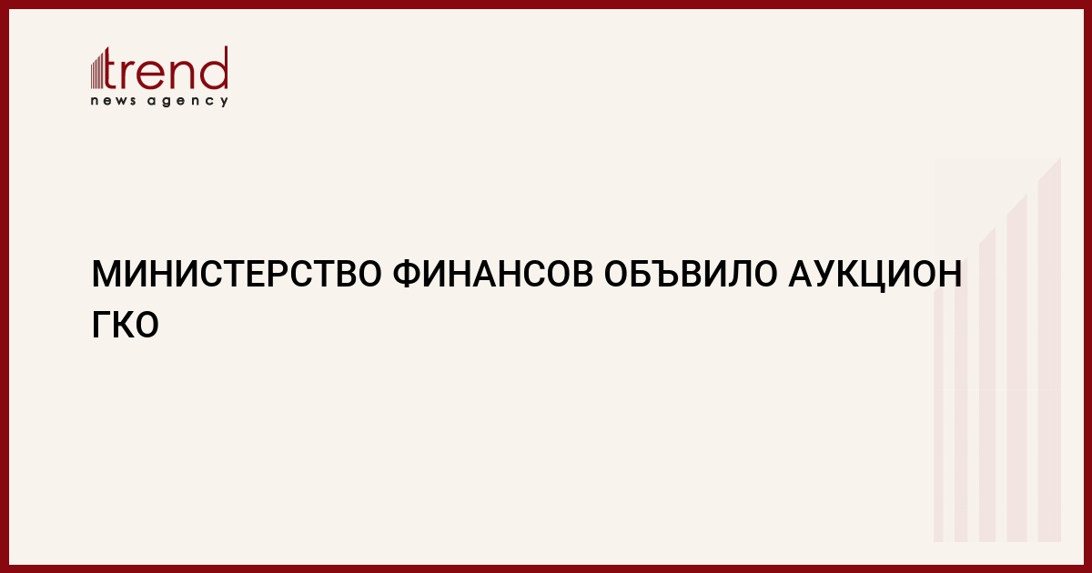 Министерство финансов Азербайджана объявило о проведении 12 августа девятого аукциона по Государственным краткосрочным облигациям (ГКО). Как сообщили Trend на Бакинской фондовой бирже, на площадке которой пройдет аукцион, предметом торгов станут ГКО под госрегистрационным номером 10300908S.