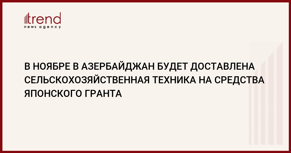 В ноябре текущего года в Азербайджан будет доставлена сельскохозяйственная техника за счет гранта правительства Японии. Как сообщил Trend заведующий отделом лизинговых услуг Министерства сельского хозяйства Айдын Азизов, через два месяца в Баку будут доставлены 25 комбайнов, закупленных на средства гранта.