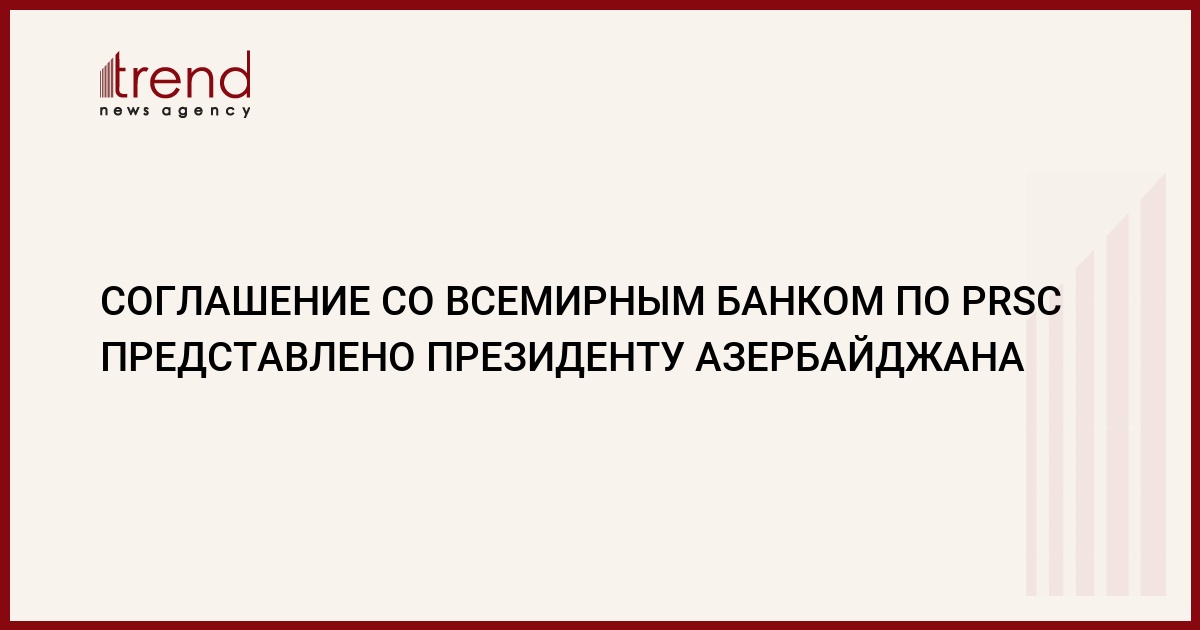 Кабинет министров Азербайджана представил на утверждение президенту страны соглашение со Всемирным банком о первом кредите на поддержку сокращения бедности (PRSC) на стандартных условиях Международной ассоциации развития.