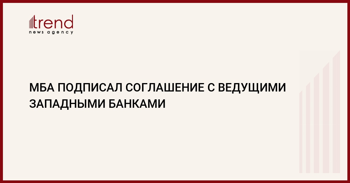 Международный банк Азербайджана (МБА) подписал 19 августа соглашение с западными банками во главе с американским Citigroup и германским Commerzbank о привлечении синдицированного кредита в $56 млн.
