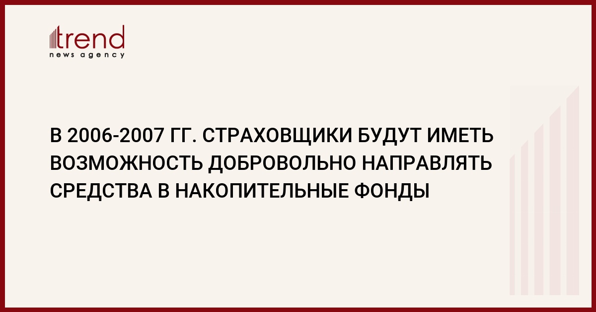 При этом обязательная накопительная система появится в Азербайджане не ранее 2008 года. "В 2006-2007 гг. страховщики будут иметь возможность добровольно направлять свои средства в накопительные фонды", - сказал С.Муслимов