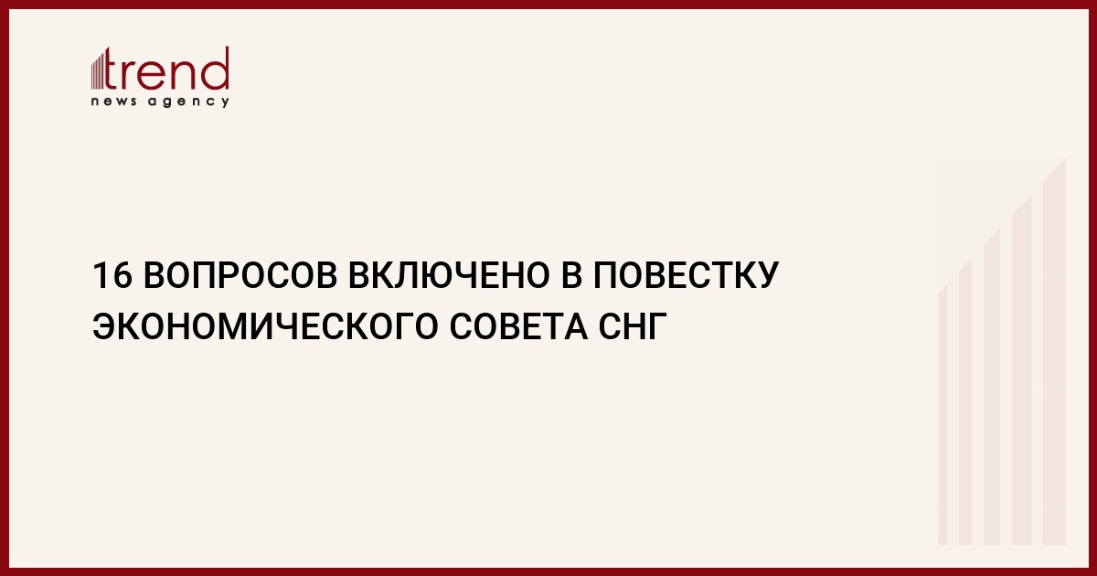16 вопросов включено в повестку 25-го заседания Экономического совета СHГ, намеченного на 12 октября в Москве. Об этом Trend сообщили в Кабинете министров Азербайджана.