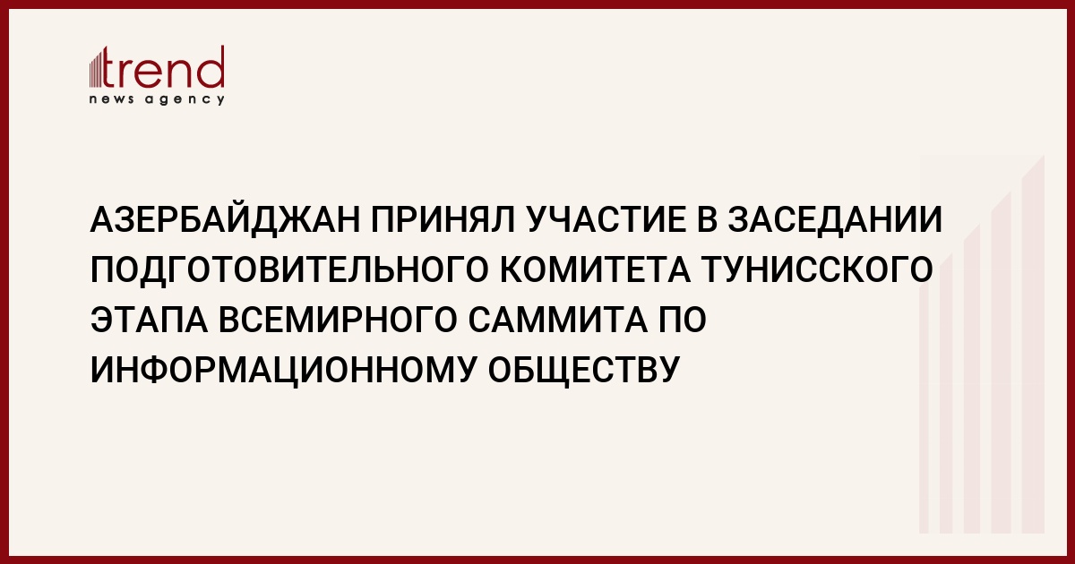 Отметим, что вторая фаза Всемирного саммита по информационному обществу состоится в Тунисе 16 по 18 ноября текущего года. Азербайджан является одним из спонсоров мероприятия.