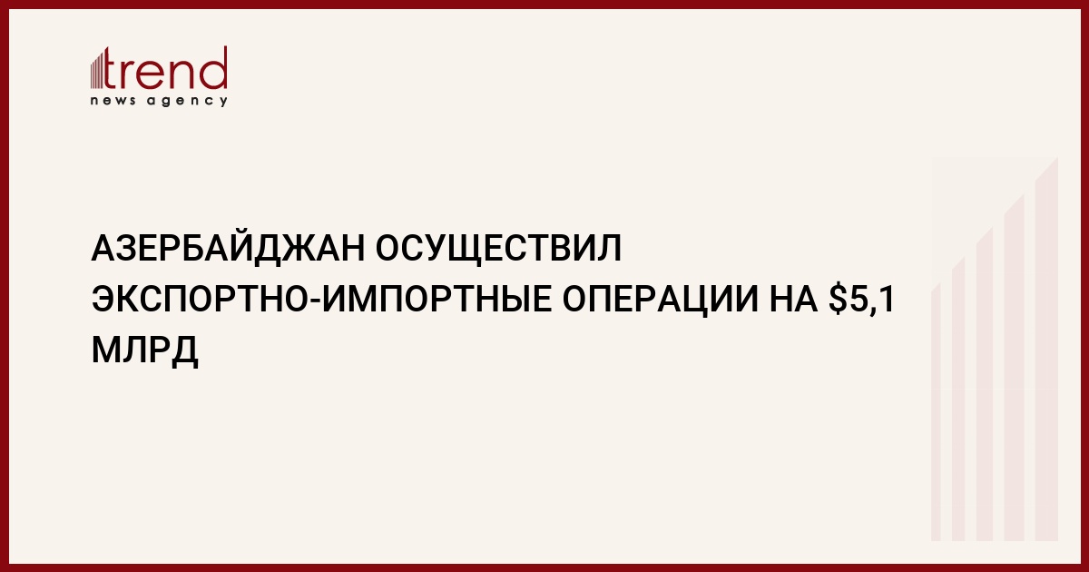 За восемь месяцев текущего года физические и юридические лица Азербайджана осуществил торговые отношения со 128 странами мира. Как передает Trend , таким образом внешний товарооборот достиг показателя в $5,1 млрд. При этом экспорт составил $2,2 млрд, а импорт - $ 2,9 млрд.