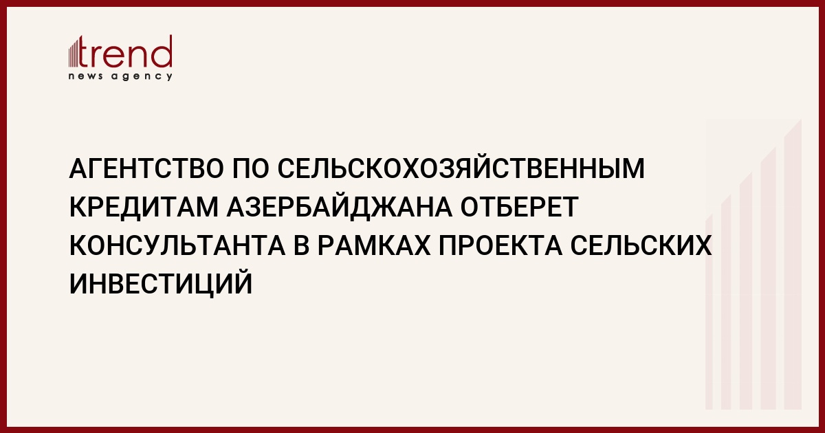 Агентство по сельскохозяйственным кредитам отберет консалтинговую компанию для прозрачной оценки документации и организации экспертизы на местах путем проведения мониторинга по 6 пилотным общинным проектам в рамках проекта сельских инвестиций. Как сообщили Trend в агентстве, пилотные проекты будут реализованы в регионе Сальян-Муган, Ширванской низменности, в Hахчыване.