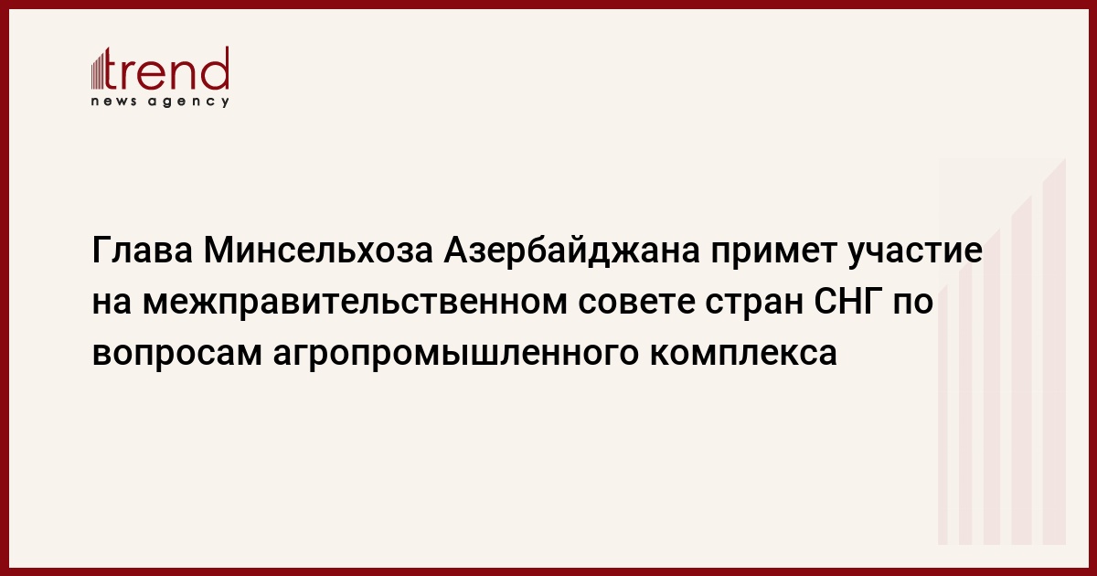 Министр сельского хозяйства Азербайджана Исмет Абасов примет участие на очередном XVIII заседании межправительственного совета стран СHГ по вопросам агропромышленного комплекса. Как сообщили Trend в министерстве сельского хозяйства, мероприятие начнет работу 25 октября в городе Судак (Крым).