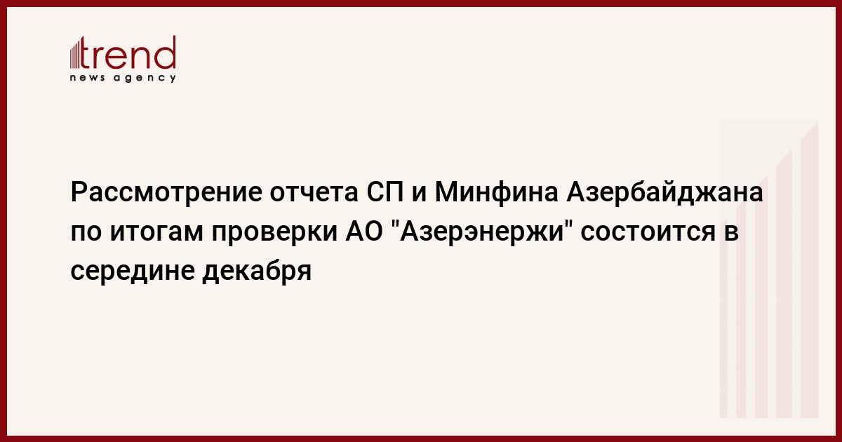 "Предполагается, что отчет по "Азерэнержи" будет рассмотрен на заседании коллегии в середине декабря", - отметили в Счетной палате.