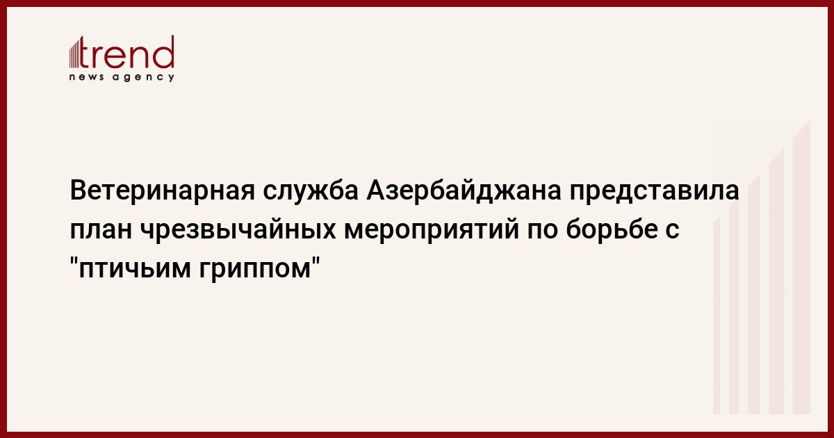 Государственная ветеринарная служба при Министерстве сельского хозяйства подготовила и представила план чрезвычайных мероприятий Госкомиссии по предотвращению "птичьего гриппа", созданной по распоряжению президента страны с целью координации совместной деятельности всех структур в этой сфере, сообщили Trend в госслужбе.