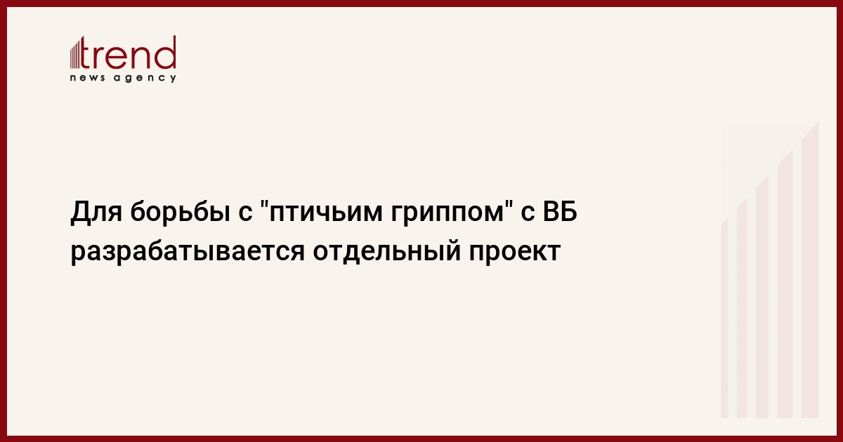 Для подготовки проекта по борьбе с "птичьим гриппом" в Баку находится миссия Всемирного банка во главе со старшим специалистом по развитию сельских местностей Maurizio Guadagni. Как сообщили Trend в бакинском представительстве ВБ, готовится отдельный проект, для финансирования которого будут направлены сэкономленные по второму проекту ВБ "Техническое содействие институциональному строительству Азербайджана" (IBTA-2), $5,14 млн. В настоящее время выполняются юридические вопросы по реструктуризации кредита IBTA-2.