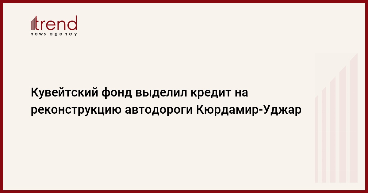 Кувейтский фонд экономического развития выделил финансирование для реализации проекта реконструкции автомобильной дороги Кюрдамир-Уджар протяженностью в 46,2 км, сообщили Trend в правительстве. Сумма кредита составляет 4,2 млн. кувейтских динаров (около $14,4 млн.) при общей стоимости проекта в $18,3 млн. Финансирование оставшейся части будет осуществлено правительством страны.