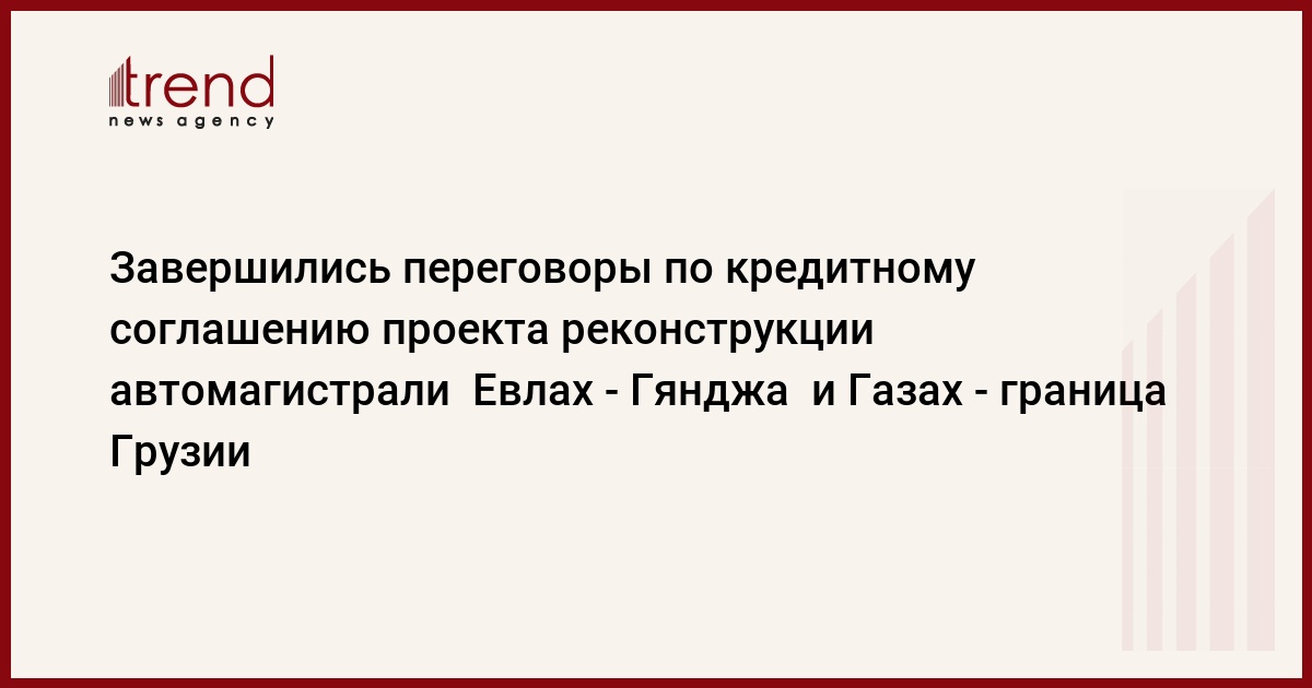 Правительство Азербайджана и Азиатский банк развития завершили переговоры по кредитному соглашению проекта реконструкции двух последних участков западно-восточной автомагистрали Евлах - Гянджа и Газах - граница Грузии, сообщил Trend глава бакинского представительства АБР Мэтью Вестфол. Банк намерен в начале следующей недели документы представить правительству, после этого будет заключено кредитное соглашение. Уточнения шли по ставке финансирования, будет она плавающей или же фиксированной, отметил М.Вестфол.