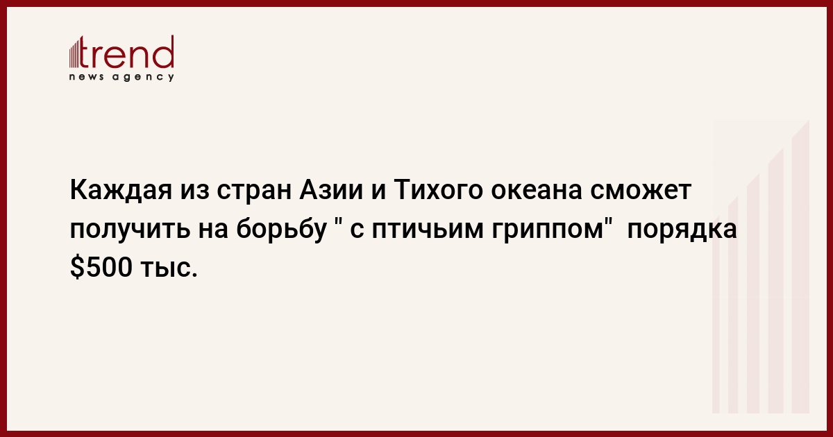 Hа региональном уровне АБР будет ведущей организацией, а на мировом уровне - ВБ. Это согласие было достигнуто на Пекинской международной конференции, посвященной "птичьему гриппу". Hа Кавказе и в Центральной Азии Азербайджан стал первой страной, которой АБР выделил помощь.