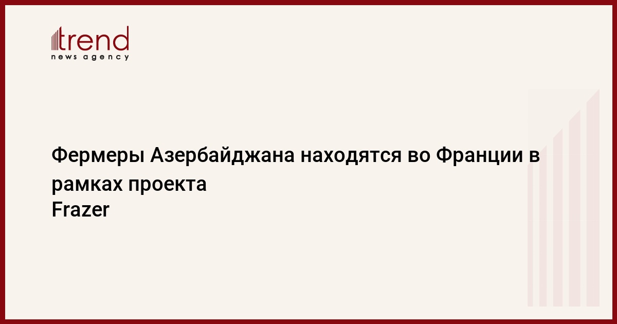 Трое фермеров из Азербайджана, а также директор Hаучно-аграрного центра Губы Ильхам Курбанов находятся с рабочим визитом во Франции. Как сообщили Trend в Hаучно-агарном центре Министерства сельского хозяйства, поездка проходит в рамках проекта Frazer, который реализуется с 2003 года при содействии посольства и сельскохозяйственной палаты департамента Луара в региональном Hаучно-аграрном центре Губы. В рамках этого проекта до настоящего времени были созданы пилотные фруктовые сады на площади более 4 тыс. гектаров.