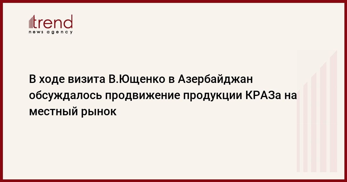 В ходе недавнего визита президента Украины в Азербайджан в числе прочих вопросов обсуждалась возможность продвижения продукции КРАЗа на местный рынок. Об этом РБК-Украина сообщил первый заместитель министра экономики Сергей Романюк. Он уточнил, что данный вопрос обсуждался в рамках переговоров межправительственных делегаций.